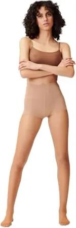 Strumpfhose für Damen 15 DEN – Highwaist Tights in Hautfarbe mit Control Top – Bequeme Feinstrumpfhose ohne Zehen – Schicke Pantyhose mit Shaping Look – Suntan/Almond