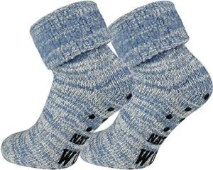 2 Paar ABS Stopper-Norweger-Socken mit Wolle für Damen Herren (39-42, Jeansmelange)