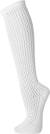 3 Paar lange Damen Trachtenkniestrümpfe mit Häkellook, aus viel frischer Baumwolle (Weiß, 39/42)