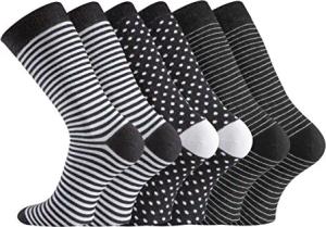 6 Paar Damensocken sortiert, Damensöckchen mit vielen modischen Motiven und zusätzlicher Garantie (a2) (Dots and Stripes, 39/42)
