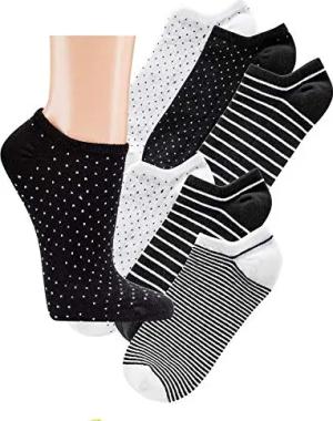 6 Paar kurze Damensocken, Damen Sneakersocken mit modischen Motiven und einer ANTI-LOCH-Garantie (Black and White, 35-38)