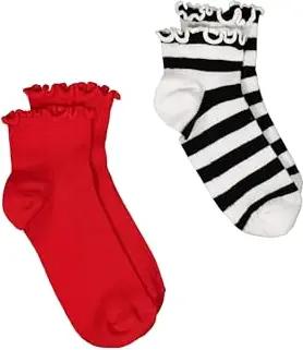 Damen, große Größen, 2er Pack Kurzschaft-Socken, Rüschenkante, Ringel
