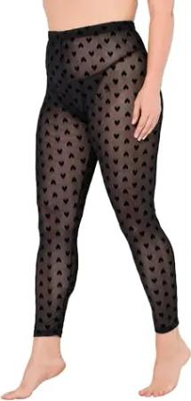 Damen große Größen Übergrößen Plus Size Strumpf-Leggings, Mesh, Herz-Flockdruck schwarz 62+ 837095100-62+