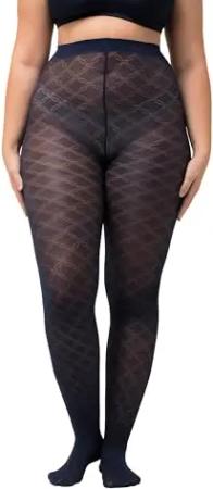 Damen große Größen Übergrößen Plus Size Strumpfhose, Rhomben, Punkte nachtblau 46+ 823390139-46+