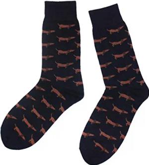 Herrensocken Business Casual Funny Socken in modischen lustigen Muster- und Farbvariationen mit hohem Baumwollanteil. (43-46, Marine Dackel)