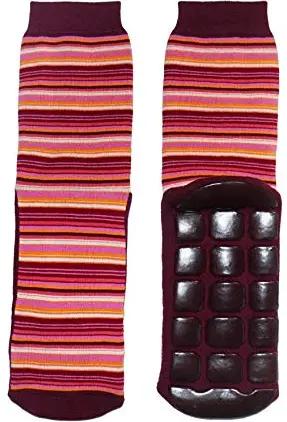 Stopper Plüschsocken mit ABS-Beschichtung in Baumwolle für Damen. In verschiedenen Muster- und Farbvariationen. (35-38, Bordeaux Ringel)