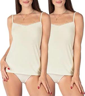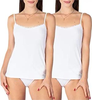 Damen Unterhemd aus Viskose mit Spitze BLV50-219 (2er-Pack: Weiß, XS)