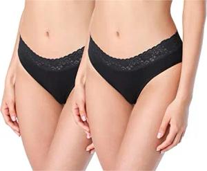 Damen Unterwäsche Unterhose aus Baumwolle Panty mit Spitze BLV50-187 (2Pack-SchwarzSchwarz, XL)
