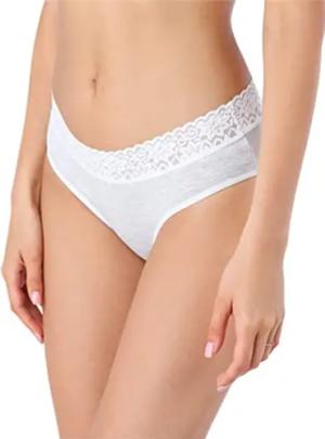 Damen Unterwäsche Unterhose aus Baumwolle Panty mit Spitze BLV50-187 (Weiß, S)