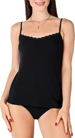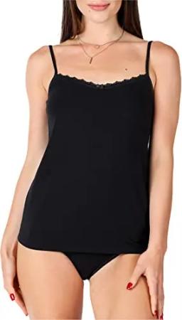 Damen Unterhemd aus Viskose mit Spitze BLV50-219 (Schwarz, XS)