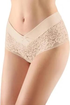 Damen Unterhose Hipster Hot Pants mit Spitze Unterwäsche Blumen Muster BLV-GAB-155 (Beige-5, L)