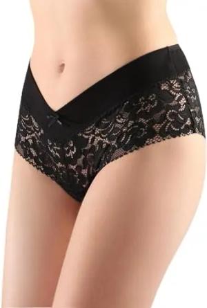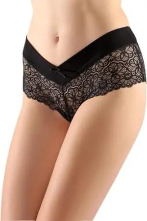 Damen Unterwäsche Pantys aus Baumwolle Hipster mit Spitze BLV50-193 (Schwarz, M)