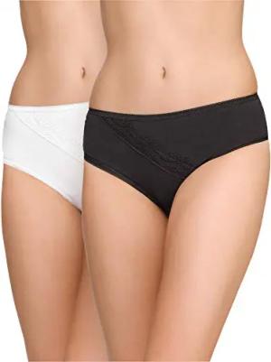 Damen Glatte Bequeme Unterhose Slip BLVDA036 (Schwarz/Weiß (2Pack), 42 (Herstellergröße: XL))