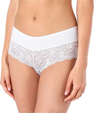 Damen Unterwäsche Pantys Unterhose Spitze Hipster Baumwolle BLV50-190 (Weiß, XS)