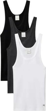 Damen 3er Pack Tank Tops Scoop Neck Cotton mit Rundhalsausschnitt, Mehrfarbig (Black/White/Charcoal Heather), L