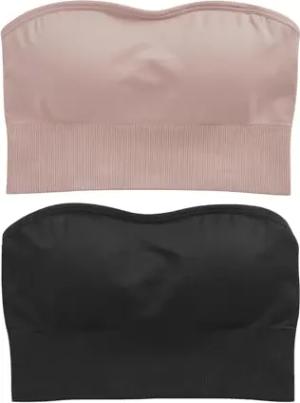 Damen Nahtfreie Bandeau-BHS, 2er-Pack Black/Light Pink L-XL