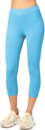 Damen Leggings 3/4 aus Baumwolle mit Stretch – Leichte Capri Leggings Damen aus atmungsaktiver, elastischer Baumwolle, ideal für Yoga Sport Freizeit Reisen MS10-199 (Türkis, S)