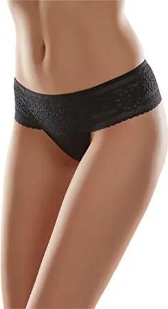 Damen String Tanga Brazilian mit Spitze MSGAB45 (Schwarz, 36 (Herstellergröße: S))