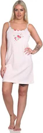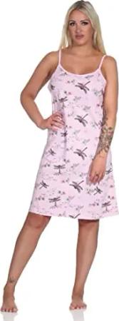Damen Spaghetti Nachthemd im Ethnolook - auch in Übergrössen, Farbe:rosa1, Größe:48-50