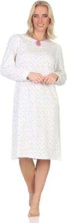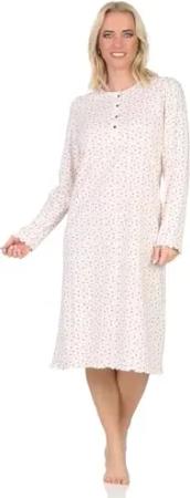 Damen Langarm Nachthemd im klassisch eleganten Design, Farbe:Creme, Größe:36-38