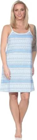 Damen Spaghetti Nachthemd im Ethnolook - auch in Übergrössen, Farbe:hellblau1, Größe:36-38