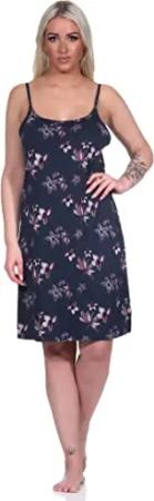 Damen Spaghetti Nachthemd in floralem Design - auch in Übergrößen, Farbe:Marine, Größe:36/38