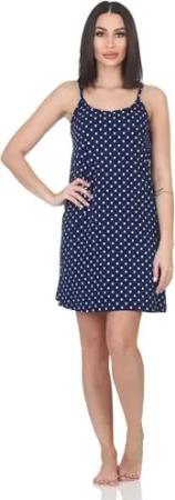 Damen Spaghetti Nachthemd in Tupfen Punkte Optik - auch in Übergrößen, Farbe:Marine, Größe:40-42
