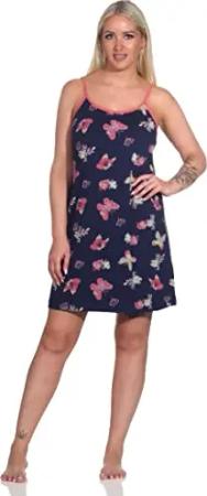 Damen Spaghetti Träger Nachthemd mit Schmetterlingsmotiv - auch in Übergrösse, Farbe:Allover, Größe:40-42