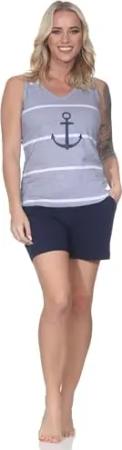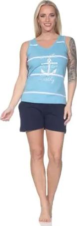 Maritimer ärmelloser Damen Shorty Schlafanzug mit Anker als Motiv - auch in Übergröße, Farbe:hellblau, Größe:44-46