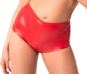 Damen Wetlook Shorts rot mit hoher Taille extrem figurbetont Skinny Frauen Slip 3XL