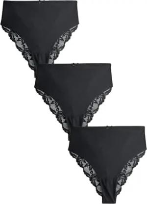 Damen Nahtlose Slips mit rückwärtigem Spitzeneinsatz im 3er-Pack, hoher Beinschnitt Schwarz 40