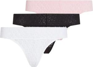 Damen String Tanga aus Mesh mit Spitze 3er Pack Schwarz XXL