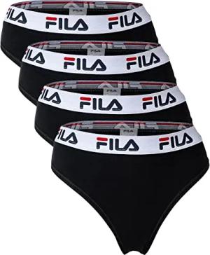 Damen String - 4er Pack Slips, Logobund, Cotton Stretch (M, Schwarz)