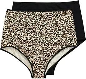 TruYou Damen große Größen Übergrößen Plus Size TRUYOU-Midislips, 3er-Pack, Spitze, Uni/Leomuster schwarz 46+ 835011100-46+