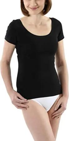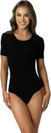 Body Damen Kurzarm aus Baumwolle – Bequemer Damen Body mit Rundhalsausschnitt und Druckknopfverschluss, Farbe: Schwarz, Größe: M (Short 158-164 cm)