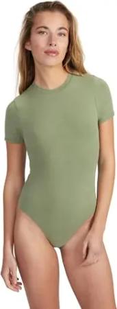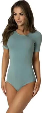 Kurzarm Body Damen aus Baumwolle, Samtig weich und Bequem Bodysuit mit Rundhalsausschnitt & Druckknopfverschluss, Olive, S
