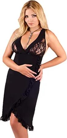 Erotisches Damen Dessous Plus Size Kleid Negligee mit Spitze schwarz Größe: 46/48