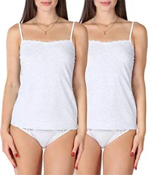 2er Set Damen Basic Unterwäsche-Collection, Spaghetti-Unterhemden, Grau, Gr. S
