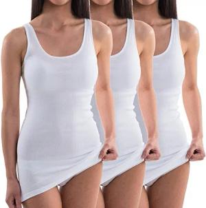 1317 3er Pack Damen Unterhemd extralang; längeres Achselhemd (+10cm) aus 100% Bio-Baumwolle, Farbe:weiß, Größe:48/50 (XL)