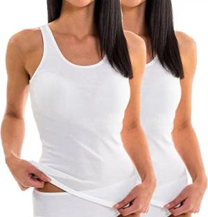 17310 2er Pack Damen Tank Top aus Baumwolle/Modal, Farbe:weiß, Größe:44/46 (L)