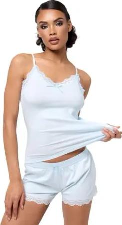 Altea Damen Einteiliger Pyjama | Farbe: Ecru | Größe: M | Material: Viscose | Unterhemd | Shorts | Spitzenausschnitt | Trägerloser Pyjama | Schlafanzuge, Nachtanzug, Nachthemd Nachtwäsche