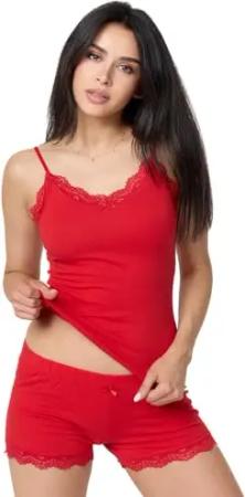 Damen Shorty Nachtwäsche Unterwäsche Unterhemd und Panty 2er-Set Mehrpack Unterhosen Pantys F908 (Rot, M)