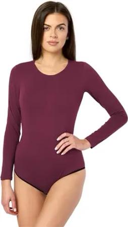 Body Damen Langarm Bodysuit aus Baumwolle Bequeme Body Damen Elegant BD900 (Weinrot, L)