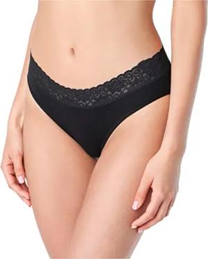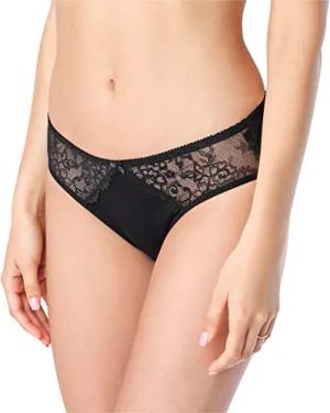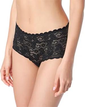 Damen Unterwäsche Pantys aus Baumwolle Hipster mit Spitze BLV50-193 (Schwarz, M)