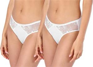 Damen Unterwäsche Unterhose aus Baumwolle Panty mit Spitze BLV50-187 (2Pack-WeißWeiß, L)