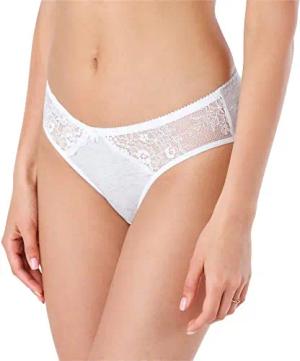 Damen Unterwäsche Pantys Unterhose Spitze Hipster Baumwolle BLV50-190 (Weiß, XS)
