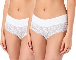 Damen Unterwäsche Pantys aus Baumwolle Hipster mit Spitze BLV50-193 (2Pack-WeißWeiß, XXL)