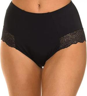 Damen Slip mit hoher Taille aus Stretch-Baumwolle und Spitze Ecodim Flacher Bauch x1 Schwarz S