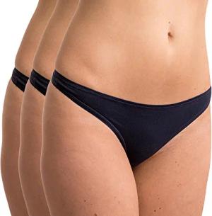 5050 3er Pack Damen Strings aus Baumwolle/Elastan, Farbe:Marine, Größe:44/46 (L)