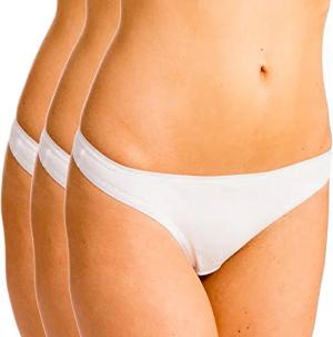 5050 3er Pack Damen Strings aus Baumwolle/Elastan, Farbe:weiß, Größe:32/34 (XS)